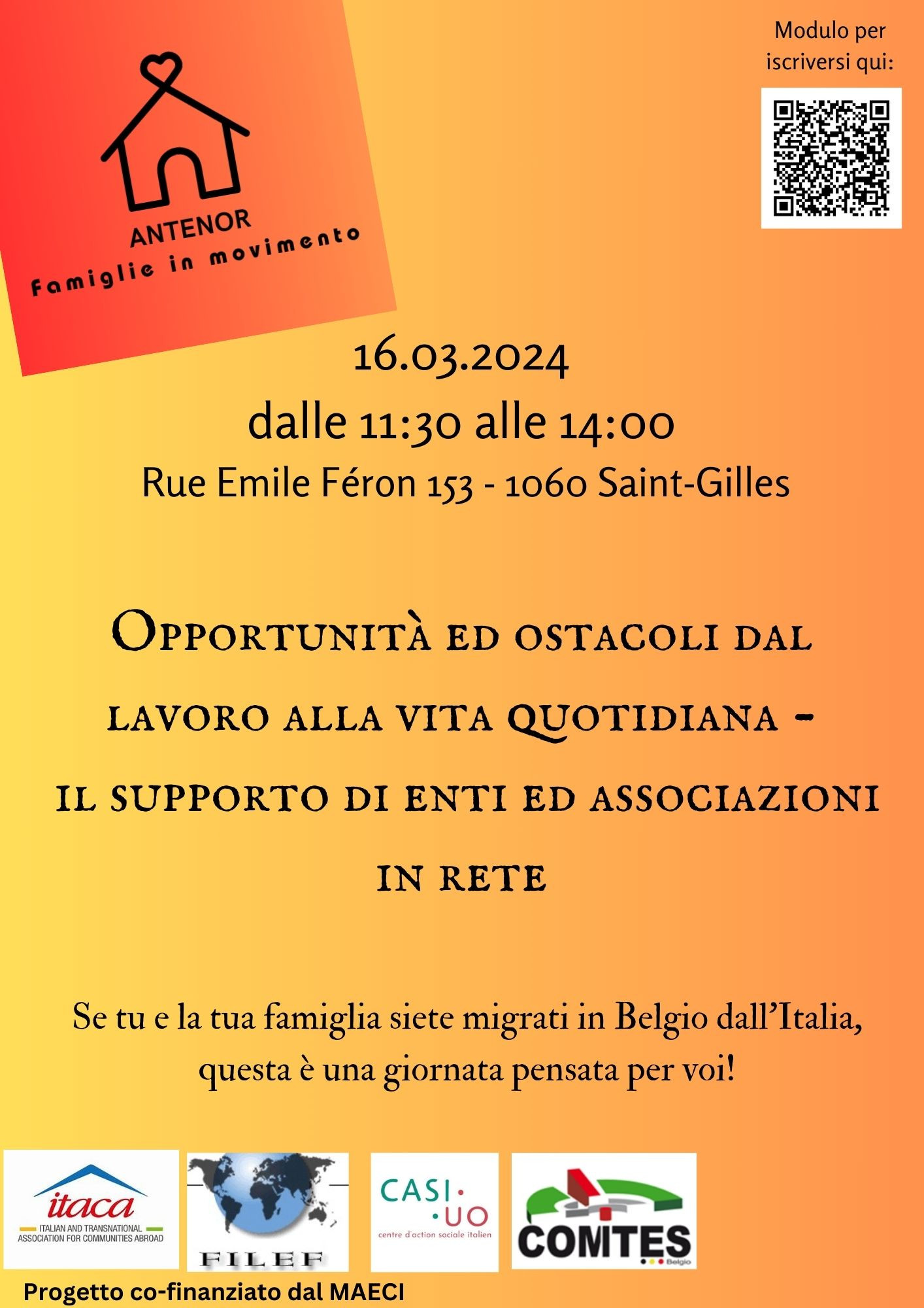 Itaca in questi anni è stata impegnata anche sul piano della progettazione europea con diversi progetti dei quali l’ultimo il Progetto “Antenor-famiglie in movimento”, del quale il 16 marzo 2024, è stata avviata la seconda fase attuativa. Itaca in collaborazione con il COM.IT.ES di Bruxelles, il casi UO (https://casi-uo.com/) e la Filef (Home - Filef Nuova Emigrazione Belgio (filefnebelgio.org);(https://grdalbelgio.transistor.fm/),si propone di realizzare un progetto di inchiesta, analisi e supporto alla nuova emigrazione italiana in particolare per le famiglie e i migranti di rimbalzo al fine di delineare una mappatura, informare, sensibilizzare, individuare le dinamiche ed i bisogni specifici e fornire una serie di strumenti concreti atti a facilitarne la realizzazione.